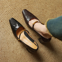 Women's Genuine Leather Pointed Shoes with Block Heel and Strap
